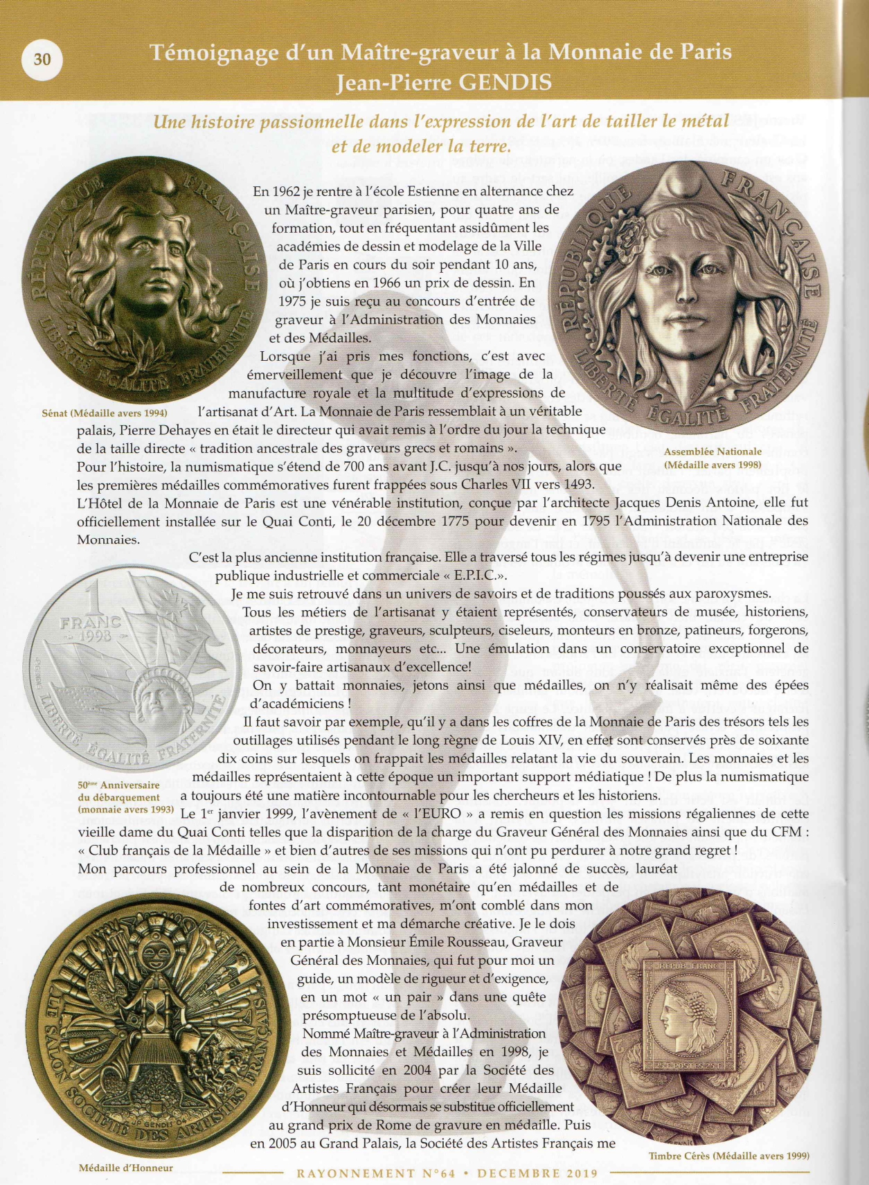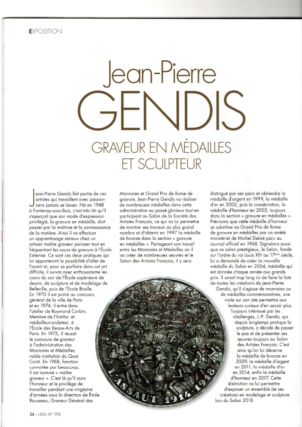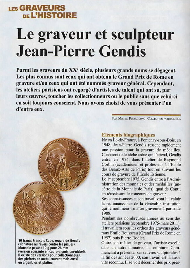 Jean Pierre GENDIS fait partie de ces artistes qui travaillent avec passion sans jamais se lasser. Né en 1948 à Fontenay-sous-Bois, c’est très tôt qu’il s’aperçoit que son mode d’expression privilégié, la gravure en médaille, doit passer par la maîtrise et la connaissance de la matière. Ainsi, il va effectuer un apprentissage sérieux chez un artisan maître graveur parisien tout en fréquentant les cours de gravure à l’Ecole ESTIENNE.